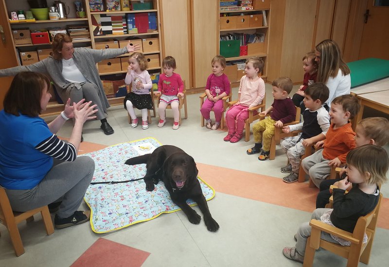 Generally both children and adults have the opportunity to observe the dog, brush him, take him for a walk on the lead, offer him a treat, etc., etc. We also make use of this encounter for various games, and creating and exchanging personal experiences. The programme is adapted to the age, interests and abilities of the clients, while reflection and conversation are encouraged. Frequent topics for discussion are: