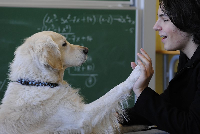 We can expect that in the dog’s presence the pupils will be more relaxed, courageous and motivated to establish social contacts more easily. The dog’s unconditional affection stimulates feelings of acceptance and safety.