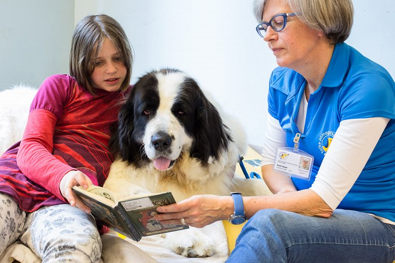 Nella nostra associazione abbiamo chiamato questo programma Leggiamo con le tačke (zampe) e viene svolto dalle coppie terapeutiche (i cani con le loro guide) che vengono ulteriormente addestrate per questo tipo di lavoro. In loro compagnia la lettura è emozionante e un qualcosa di speciale, in quanto, più la lettura è divertente e rilassante, maggiore è l'interesse del bambino.